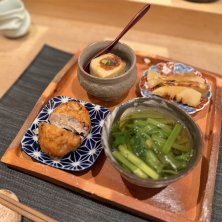 石鯛(大分) 金目鯛(千葉) 地はまぐりバター蒸し(九十九里) 和牛イチボ ピーマン (鹿児島) 本当はこのあと、食事(アオリイカの手巻き)と 甘味(苺と金柑の白和え)が続く予定だったけど、お昼ご飯が遅かったせいかお腹いっぱいでストップしてもらった。 ここまでだと「軽めのおまかせコース 6050円」になるらしい。