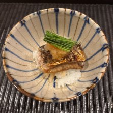 酢飯に陸奥湾鱈白子ソテー、香茸と白髪葱ソース、地物枝豆