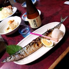 今年の刀は立派です💓 腹抜きますか? と聞かれたけれど、 抜くわけないやん!! ご馳走ですもの💓 頭と真ん中の骨以外 余すとこなく食い尽くしました😝 霧筑波とともに🍶🤎 ♯秋刀魚の塩焼き