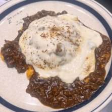 パンケーキが沢山食べられるようにオムライスも注文😋 クワトロチーズキーマカレーオムライス