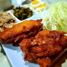 こんにちは☀ 今日は外食コケッ!!!>🐔 デカ盛りで有名なお店なんだけど、 さすがに無理ꉂ🤣𐤔 なので、ノーマルの唐揚げ定食‼️600円😅 って安いわ🤭