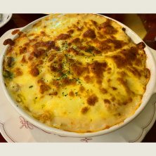 スパゲティグラタン(ホワイトソース) 中にはマカロニではなくパスタ。 パスタ自体の味が凄く美味しい! 香ばしい味わい。 そしてチーズが伸び〜る。 初めて食べた時の感動が湧き起こりました。 やっぱり美味しかったです😋 思い出すとお腹が空いてきます。