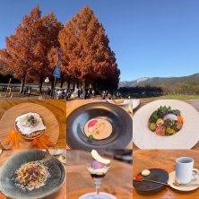 湖西から敦賀への旅② ~禾果漂馨にて~ *amuse 米粉のチップス / じゃがいものリエット マリネ他 梅風味 *appetizers クミン風味のキャロットラペ / 特産船木ごぼう / サブジ / ブロッコリーとザアタルスパイス / 琵琶マス / わさびと自家製ハムと柿 / さつまいも / 蕪 / リーフと柿のドレッシング *soup 赤蕪と酒粕に魚粉やブロッコリーのペースト *rizotto (高島産無農薬リゾット米使用) ~天然鴨•きのこのチーズリゾット~ ⬇︎
