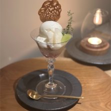 大好きな禾果漂馨のデザート 『りんごとさつまいものタルト・タタン風』 禾果漂馨さんの自家製ジェラートは、 りんごのキャラメリゼ さつまいものムース クランブルとビスキュイにパイ生地の食感を加えたパフェ仕立ての一皿 おまかせでお願いすることが多いので、当然デザートもおまかせ 娘が食べたがっていた、禾果漂馨さん人気のジェラート 幸せ