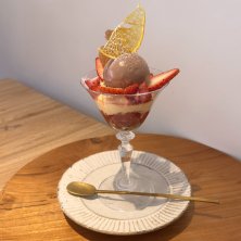 湖西への旅~おまけ~ 禾果漂馨の氷菓 コースの一品 禾果漂馨と云えばジェラートと代表されるほど ジェラートが美味しくて素敵 見て幸せ 食べて幸せ♡ *苺のジェラート / シェルブールチーズ / レモンのグラニテ / ヨーグルトのチップ