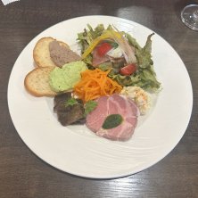 カポナータ、サーモンのカルパッチョ、さつまいものさらだにんじんラペ、ハムにジュノベーセソース、タコとセロリのレモン酢、レバーパテ、グリーンピースパテ