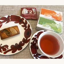 T2のザクロ&ハイビスカスティーとともに限定の金蜜芋フィナンシェを フィナンシェめちゃくちゃ美味しかった
