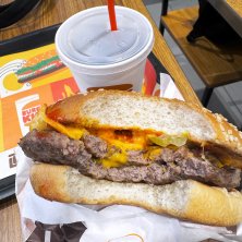 バーガーキングのスパイシーにんにく・ガーリックバーガーのチケットがあったので、国際免許を取りに行く前に食べてから向かう。 めちゃくちゃボリューミーで食べるのに疲れるくらい笑 でも美味しかった。食べながら仕事で大変なことが起きたので少し凹む