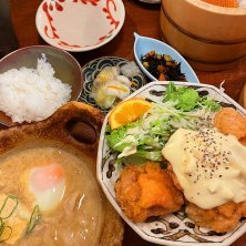 羽釜ごはん 美味しい定食屋さんでお友達とランチ! 羽釜で炊いたごはん、最高です🍚 オレンジ香るチキン南蛮