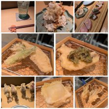 美味しい天ぷらやさんに行きました! 山菜3種 タラの芽、こしあぶら、こごみ 稚鮎 アスパラ たけのこ サワラの空豆はさみ まいたけ 塩麹漬けのとり天 長芋しそ巻き 海老 ネタはアラカルトで頼めます 創作ネタみたいなのもあって全部食べてみたかったくらい 天ぷらは衣薄めでカリッとしててネタ本来の美味しさが楽しめる感じでした