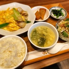 日替わり定食 雨のなか来てくれた両親&知人と 4人で中華ランチ🥢 春秋でお茶もしました。
