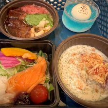 ❁スモークサーモントラウトとオレンジのサラダ ❁ポテトグラタン ❁牛肉のパイ包み焼き ❁パン ❁オラフのマシュマロココアムース 友達とファンタジースプリングス目当てでディズニーシーに行って来ました🧚 始発で行って、ラプンツェルのランタンフェスティバルだけ乗れました👏 あとはエリアを楽しんで、ランチはアレンデール❄️ いいお値段だけどとってもおいしかったです🥰