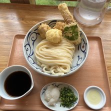 ☆もり豊天 ざる中盛り とり×2、ちくわ、半熟卵、大葉 コシがあってながーい讃岐うどん。美味しくて食べ飽きないのに、すだち米油でまた違う楽しみも☆ 天ぷらはどれもさくさく、とり天はジューシーで大きいのに物足りなく感じるほと。 広々としたお店で居心地が☆平日でも少し並んだけど、また来たいなー♡