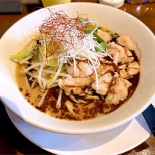 ランチです。 普段食べない汁無しです。 汁無しラーメン 濃厚魚介豚骨 950円 麺は200㌘ 腹パンですね。 美味しくいただきました!