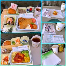 カンボジアへの旅② 機内食 眠っていたので、最後の配膳になりメニュー変更に 『どちらがいいですか?』と写真を持ってきて(日本語解説付き)訊かれたので、上下に並んだ下側の写真を指した 肉ver. しかし、届いたのは上側の写真にあった エビフライ 思わず『No thank you』と断る しばらくして届いたのは、どちらの写真にも無い有り合わせ?の機内食 あまりにもだったので、先に届いていたオットと交換してもらう 後でCAさんが謝ってらした クレーマーみたいで嫌だったけど、エビフライは要らんわ
