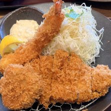 海老ヒレロースランチ1680円 ごはん、キャベツ、味噌汁 おかわり無料😋