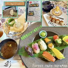 🍀緑の風Forest cafe sora*ne 🕊 🥦🍆野菜と玄米を使った創作寿司🍣🥕 季節野菜のにぎり寿司ランチ1,580 〜空音名物 おでん大根の天ぷら・豆味噌汁(愛知県産)付〜 ➕ランチデザート350 本日のデザート&玄米だんご1本 ➕ランチドリンク200 有機コーヒー☕️ お友達が持っていたデザートとドリンクの半額クーポンで 275円お得🉐でした ありがとうꕀෆ¨ 彩り良い創作寿司 目👀で楽しませてもらいました 心と身体は大喜び♬꒡̈⃝ 癒されました🍀.*