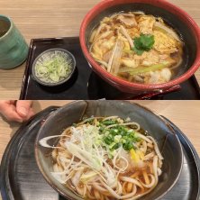 こんにちは🌞長年の友達とお蕎麦屋で、親子うどんとネギおろしうどん