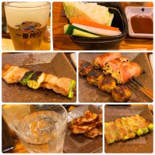 研修2日目☆『真衣千』にて串焼きAコース¥2,400。絶妙なタイミングで出てくる串焼きが本当においしい😋鹿児島美人に入れてもらういも焼酎「三岳」のまたおいしいこと✨お湯割りはお湯→焼酎、水割りは焼酎→水、鹿児島ではロックで呑まないと教えてもらいました。
