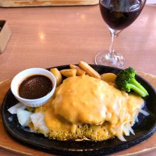 4種チーズソースの手捏ねハンバーグ 150グラム チーズがたっぷりで美味しかった😋