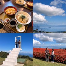 湖西から若狭小浜への旅① 娘夫婦と小旅行へ いつもより少し早くは出たものの、高速の渋滞は免れず3時間で高島に到着 高島ビレッジのうどん屋さんで美味しいご飯を堪能 *小エビの天ぷら天とじ丼とざるウドン(限定5食) その後箱館山に移動し、色とりどりの花や名産高島ちぢみのカーテンに彩られた山と美しい琵琶湖の景色に癒される 気温は21℃ 日陰は涼しい 秋らしい1日