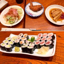 金曜日の宴 今更の歓送迎会でした♪ このお寿司屋さんは2度目です。最初の訪問は4月のお花見の二次会、さっぱり覚えてません… 今回は味わっていただきました‼️