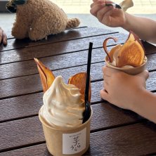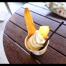 おいもソフトミックス 下に細かなお芋チップが入っている いもんぶらんというお芋のモンブランが有名
