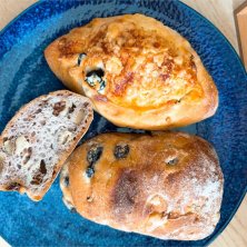 本日のお昼ご飯 セミドライトマトとコーンのピザ🍕ハーフ ¥350 コーンが缶詰の物ではなくて、いかにも芯から取ったとうもろこしの雰囲気。粒同士がくっついてる❤️コレは絶対美味しい!と思って選びました。 新しく移転したパン屋さんに初訪問。10時半オープンと同時に入店したので、パンの種類も沢山あって、全部美味しそうでややしばらく迷いました😅 店内はこじんまりしているけど、可愛らしい内装で席数は少ないけどイートインも出来るようになってました。 次々とお客様が来店していて人気のパン屋さんです
