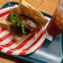 振り返り投稿🍔 8/26夕飯 母の現金騒動で消耗し切ったカラダへ栄養補給にと妻に誘われて行ったエキュート赤羽みなみの🍔専門店 この感じは、ファイアーハウス❤️ 頼んだのは食パンのダブルチーズバーガー🍔とポテト🍟のセット 味わいもファイアーハウスだよーと一人感動🥺 連れてきてくれた妻に感謝です♬