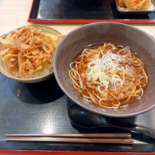 昨夜の夕食! 用事を済ませて夕食を食べました。 ミニかき揚げ丼と温そば