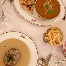 ファンタスティックビーストでダンブルドアとグリンデルヴァルドが密会したレストランのロケ地でランチしました。図らずもマッツミケルセンが座った席だったと思う💕