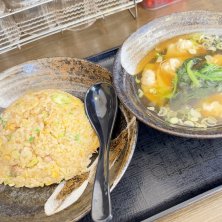 チャーハンとワンタンスープ チャーハン専門店 気になって行ってみました 色々なチャーハンがありましたが、最初だったので普通のチャーハンに パラパラで美味しかった