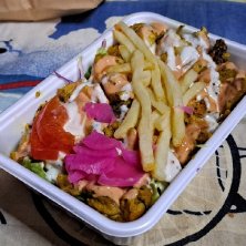 昨日(2月27日(木))の晩御飯 その② 【UberEats/エフェリフケバブ 白楽店】 ②チキンケバブライス・甘口トマトソース 900円
