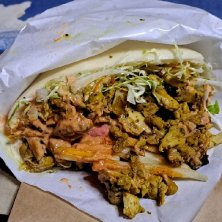 昨日(11月29日(土))の朝御飯 その① 【UberEats/エフェリフケバブ】 ①ミックスケバブサンド 900円 ビーフとチキンのミックス♪