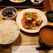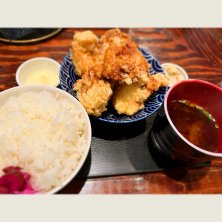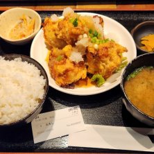 唐揚げ定食950円 1000円以下でこの量は嬉しいです。 鶏肉の部位はモモではなく胸あたりかなと思います。 タンパク質を摂りたい方にはおすすめですが、少し硬めです。 タレは少し甘め。 焼き鳥丼のようなものを頼む人が多かったので次挑戦しようと思います。