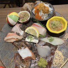 お造り10種♫ 鮮度はよく、色々食べれて嬉しい! 私はフグと胡麻和え、イクラとウニのお寿司⁉︎が気に入りました✨✨ #お造り#魚#新鮮#お寿司#イクラ#ウニ