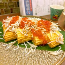 だし巻き玉子にシラスといくら