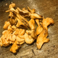 もんじゃの写真を撮り忘れた! 白子と舞茸の炒め物