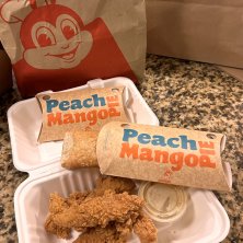 ケインズですっかりハマった、チキンフィンガーをジョリビーでもオーダー🍗💕骨なしだからほんと食べやすい✨ 衣がゴツゴツ系でお肉も柔らかいけどしっかり系。 ソースは、BBQ、グレイビー、ハニーマスタードが選べたのでハニマを🍯 ジョリビー定番?のピーチマンゴーパイもずっしりとマンゴーペーストが入っていてお3時に最適美味でした😎👍 私的にはケインズに軍配🇺🇸