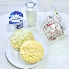 ランチ😃 バターが香るメロンパン🍈メロンが香るメロンパン😋 石窯ショコラ&マカダミア😋 牛乳🥛😋