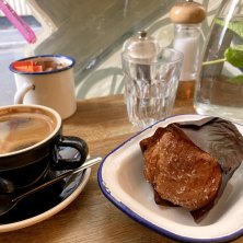 時にはカフェで勉強したり。 ロンドンで、おひとり様で入りやすいカフェは重宝します。 マフィンはオレンジ&ココナッツ味。