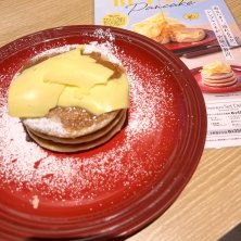 デザートは、場所を変えて… メニューの削りバターと 実物の削りバター ちょっと違うような…😅 クラシックパンケーキもなかなか美味しい😋