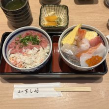 この店舗限定の二色丼。 海鮮丼とネギトロ・カニ丼。 いろいろ食べれて贅沢な感じ。