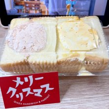 お昼~(*´罒`*) メリークリスマスで テイクアウトのサンドイッチ ツナ&タマゴ 真っ赤な店内でオープンの時 少し話題になってたお店 1度お土産に頂きましたが 初めて行ってみたけど 本当に店内真っ赤っかでした~🤣