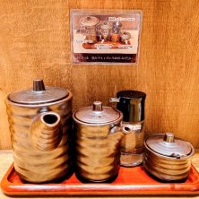 卓上には数々の調味料があるので "ソース"には辛子 "おろし"に"ポン酢" 変わり種の"透明しょう油"は "山葵"と一緒に 一切れずつ 味の違いを楽しみながら 頂けるのがGood♥