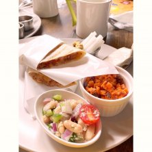 🍍ベジタリアンスイートチリパイナップル&玄米ブリトー 🌯スロッピージョーブリトー スーパーフードのランチセットスープとドリンクもついて結構お腹いっぱいになります✨ 友人とワンコも一緒に素敵な時間でした☕️