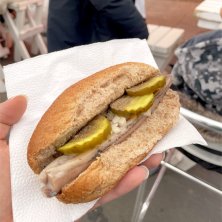 アムステルダムのVishandel Molenaarで食べたハーリングのサンドウィッチ 程よく塩が効いてて、ピクルスや玉ねぎとも良く合う 街中で食べると6ユーロくらいしたけど、ここは4.5ユーロだった Albert Cuyp Marketにあるから食べ歩きにもちょうど良いね