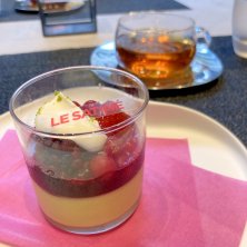 ・クレームブリュレピスターシュ ピスタチオペーストではなく、ピスタチオから抽出したオイルを生クリームの油脂分と濃度を合わせて作ったものと各種フレッシュベリーとそのソース 口の中いっぱいにピスタチオ!!! ぶわっと来る!! (安いピスタチオに感じる)きな粉感ゼロ!!! プリべでイートイン、最高だわ✨ 運良く成田シェフから直接お菓子の説明を聞くことが出来てとても嬉しい🥰