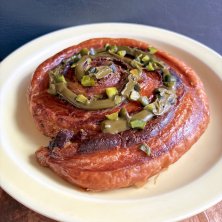 朝タタン〜 ・ロメルトフ・ポンム ギュギュギュゥゥッと詰まってキュンと酸味が効いたブラムリーとサクサクエアリーなフィユタージュに、やや甘めシャンティがたっぷり! シャンティのミルキーなこくと優しい甘さがブラムリーの酸味を丸めてバランスが素晴らしいくめっっっっちゃ美味しい!!!! ピスタチオの食感もアクセントになっています 別添えの追いシャンティも嬉しい!