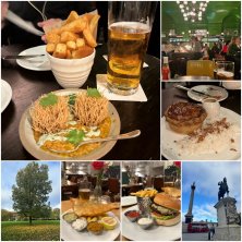 ロンドンごはん♡ 昨夜は街ブラしてて適当に入ったパブでごはん♡ おつまみはマサラスパイスのスコッチエッグ、カレーソースが美味しい♡ 奥にあるのはファットチップス。毒の味です…笑 そしてメインはチャレンジ! ヤギのお肉のパイ包み。バスマティライスとグリーンカレー風。 ロンドンはインド系が多いので、こんな感じの料理もたくさんあります。 そして今日のランチは旦那の希望でハンバーガーとフィッシュ&チップス。 最後のごはん、残念ながらハズレでした… さて、旅は終わり。これから日本に帰ります!
